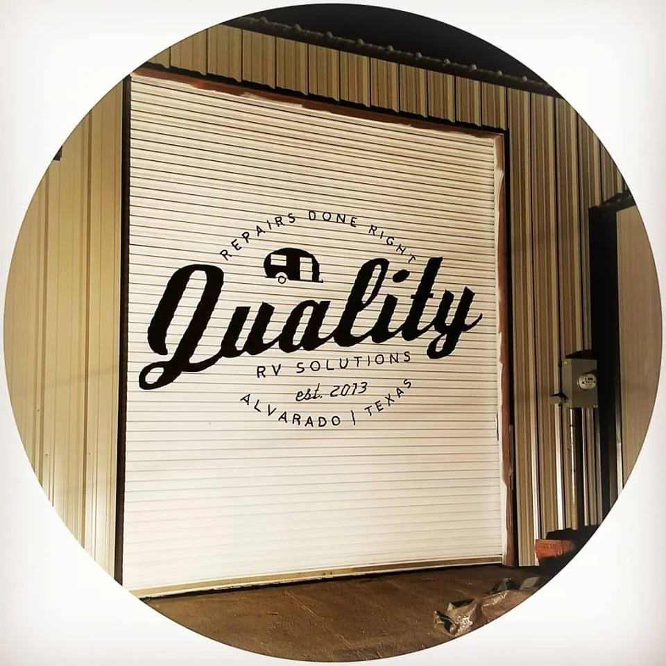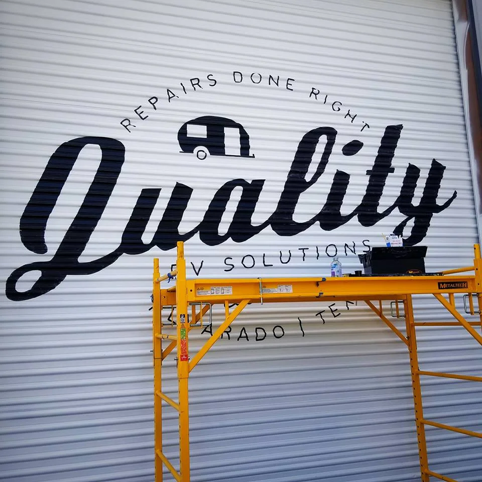 Quality RV Solutions moved their existing business to Alvarado, TX. The request was to paint their logo on the corrugated garage door. The texture makes for a definite challenge for clean lettering. I appreciate the new challenge and opportunity.